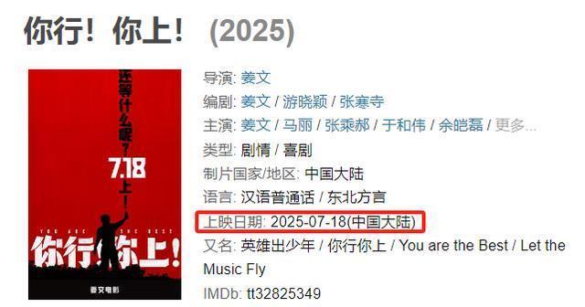 又是改名又是改档,看来姜文对我方七年磨一剑的新电影也不是很有信心。 当得知姜文将会推出一部名为《英豪出少年》的新顷刻,不雅众也曾充满了意思以及期待之心。可看到了影片的故事剧情简介后,嗅觉小数皆不姜文,和姜文之前的《让枪弹飞》《魔高一尺》等作品有着极度大的分裂。几个月后,《英豪出少年》便改名为《你行你上》,并官宣定于7月25日暑期档上映。 然则在7月25日这一天,大鹏自导自演的《长安的荔枝》也会问世。所谓“王不见王”,两部热心度皆很高的电影定档并吞天,那势必会有一场锋利的票房格杀。不外这个时期,它们拼的主要即是质料和口碑,淌若哪一方的口碑垮塌或者不尽东说念观点,那势必会惨败。