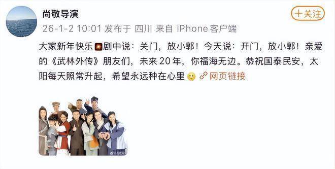 郭芙蓉目田了体育游戏app平台,二十年快得很,弹指一挥间……今天(2026年1月2日),恰是电视剧《武林听说》首播20周年的日子,多个相关话题登上了微博热搜。 本日,姚晨在微博发文称:小郭重获目田的第一天,天高云阔任鸟飞!与此同期,导演尚敬也在外交平台上回话,庆祝《武林听说》开播20周年,并祝颂剧中的一又友们,改日的20年福海魁岸,愿国度安康,阳光普照,心中的但愿永不用逝。 《武林听说》由北京定约影业投资,尚敬捏导,闫妮、姚晨、倪虹洁、沙溢、喻恩泰、姜超、王莎莎等主演。该剧于2006年1月2日